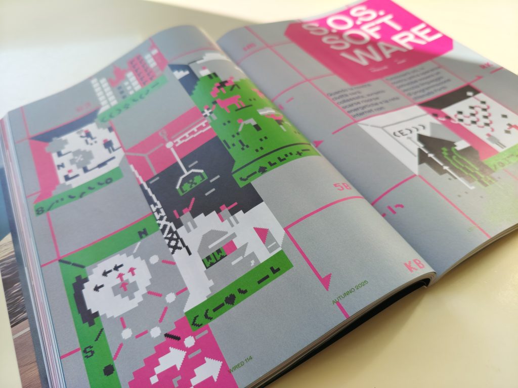 Illustration for an article by Tiffany NG on Collapse OS, S.O.S. SOFTWARE published by WIRED Italia